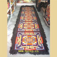 藏毯是植物染色,手工捻線,經(jīng)藝人的精心編織而成。它柔軟、耐用、美觀、大方,又有濃厚的民族特色,對生活在高寒地區(qū)的人們隔潮御寒、保溫取暖有重要作用。因些是長期在牧區(qū)生活所不可缺少的用品。它的品種,有地毯、炕毯、坐毯等。它是在藏族傳統(tǒng)藝術(shù)的基礎(chǔ)上,吸收、融合了漢族、印度和尼泊爾宗教藝人精華,形成具有自己獨特的藏族藝術(shù)風(fēng)格的工藝美術(shù)品。 傳統(tǒng)藏毯的藝術(shù)風(fēng)格,帶有濃厚的宗教色彩,如佛八寶、暗八仙、國王七寶等。佛八寶即法輪、法螺、寶傘、寶蓋、荷花、寶罐、雙魚、盤花;暗八仙屬漢道教文化即寶劍、寶葫蘆、漁鼓、陰陽板、仙笛、寶扇、花籃、荷花;國 王七寶也稱怵寶,屬印度佛教文化,即方勝、連環(huán)錢、犀角、令牌、象牙、珊瑚、珠寶。還有漢文化的琴棋書畫和梅蘭竹菊等。這些內(nèi)容既展示了人們的勤勞智慧和精神力量,也體現(xiàn)出人們對美好未來的期待、愿望和幻想。藏毯的表現(xiàn)形式以傳統(tǒng)式為主,還有自由式、龍鳳式及隨品種形式不同的構(gòu)圖形式。色彩表現(xiàn)方面尤為豐富,顏色艷麗、純度高、對比強,色彩構(gòu)圖穿插靈活,與藏族建筑彩畫的裝飾風(fēng)格一脈相承。